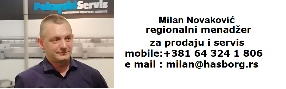 Hasborg predstavništvo za distribuciju, prodaju i servis mašina i opreme za teritorije  Srbije, Bosne i Hercegovine, Severne Makedonije, Crne Gore, Hrvatske, Slovenije, Albanije.